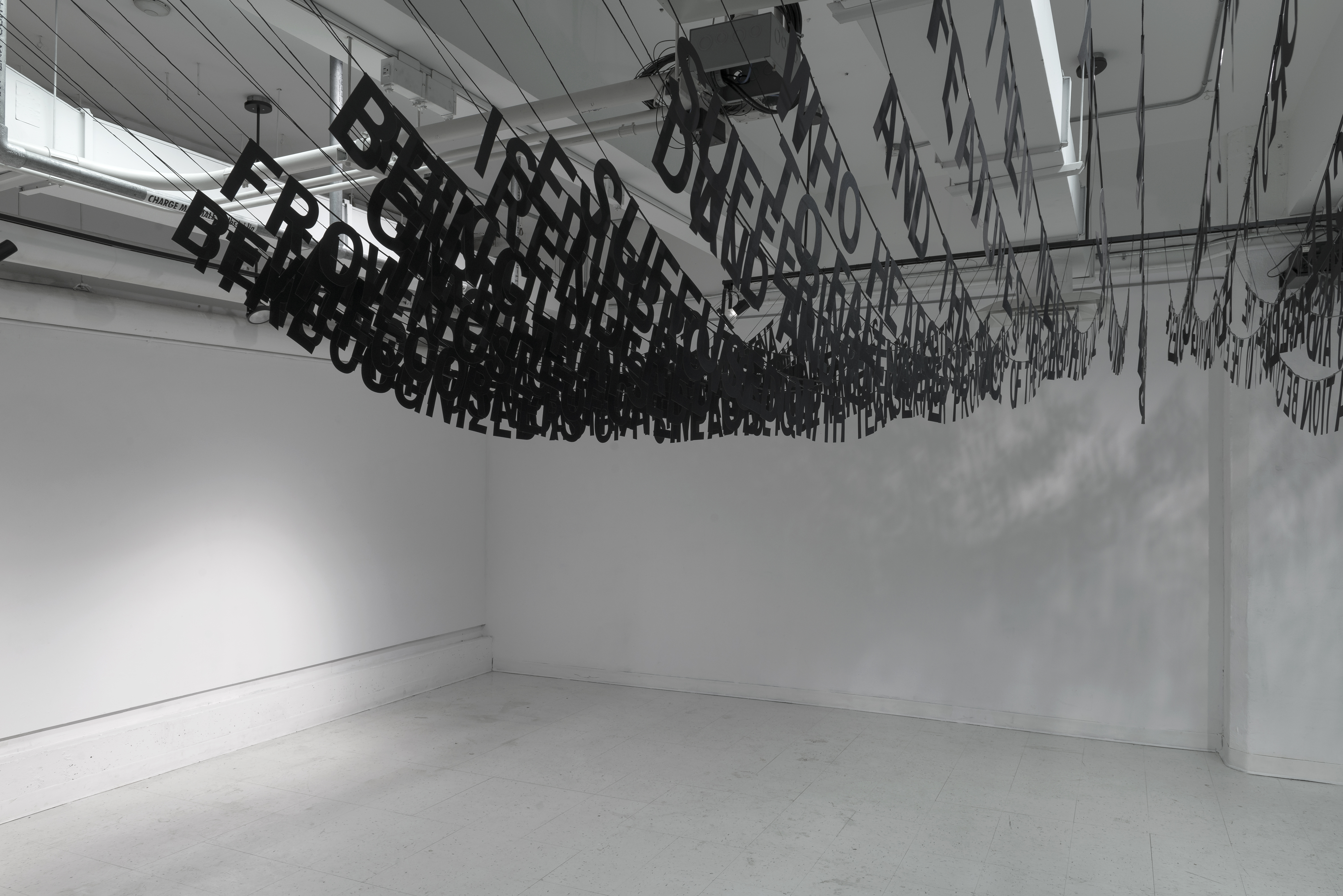 Words can roll (off the tongue), be drenched (in meaning), weave (in and out of legibility), or be cut (and pasted). Text is material capable of encapsulating and transmitting feeling. Chapter VII repurposes existing text, treating it as an object to be recast in a new material form. This object-text creates an opportunity for conversation with the viewer’s body and alludes to the (in)discernibility of negative emotions.